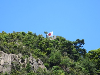 12:19 山頂にはためく日の丸。 |
