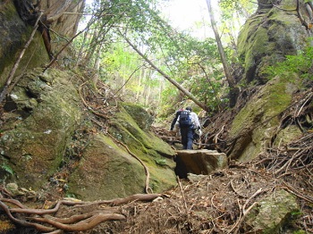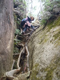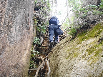 | 11:09 中ノ岳に登る鎖場。 |