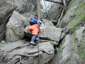| 夕陽岳へ、鎖場を登る。 |