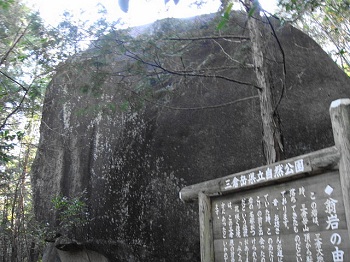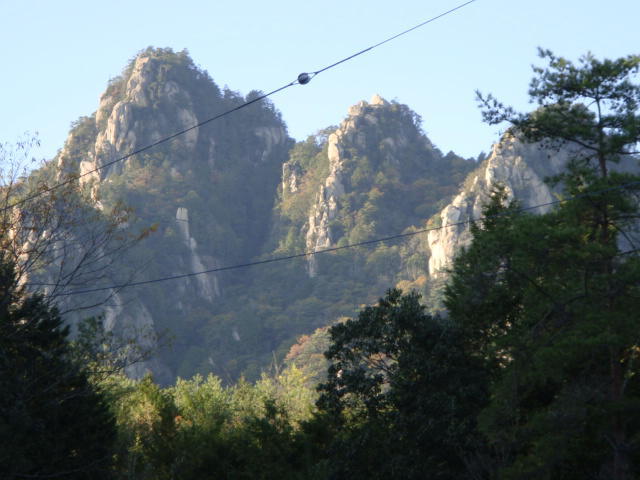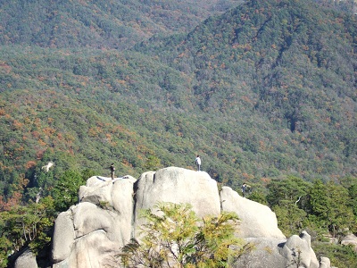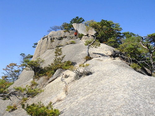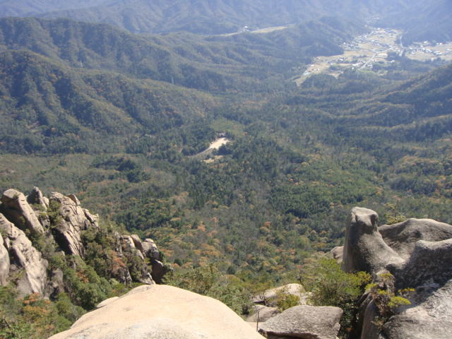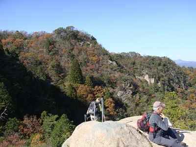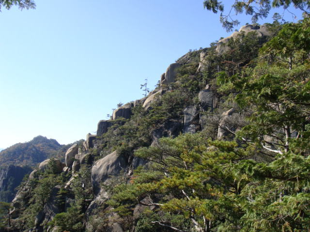 夕陽岳先端から見上げる。降りてはみたが、ちょっと怖かった。この後、上に立ってる女性が降りてくる! |