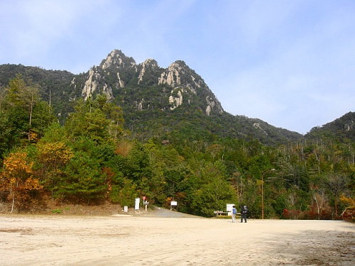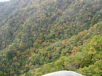 | 登山と紅葉を楽しむということで 三倉岳へ登ってみました。三倉岳の駐車場のカエデは、鮮やかに色づいていましたが、山の装いには少し早すぎたようです。 |