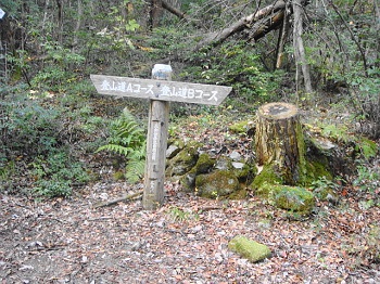 13:17 4合目の案内板。Bコースへ向かう。 |