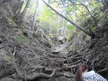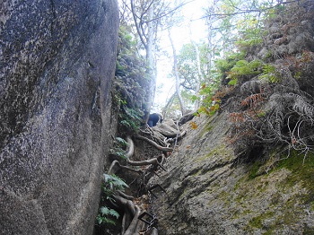 11:10 夕陽岳に向う鎖場。 |