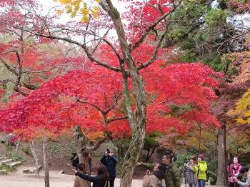 | 安芸の宮島の紅葉はどんなかなと、弥山へ。今回は、紅葉谷コースから大元公園へ下る。紅葉谷は見頃だったが、なんと異邦人の多いことか。 |