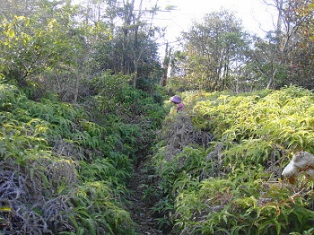 11:21 羊歯の登山道。 |