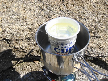 | 12:32 燗をしてみたが・・・ぬるい。カップに移して直接温めるべきだった。 |