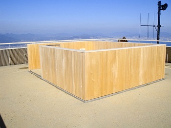 | 13:59 リニューアルされた展望ハウス。但し 2階部分は 未だ使用できない。 |