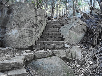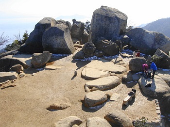 | かなり遅めの初詣に 弥山へ出掛けてみました。春の陽気かと想わせる好天ですが、平日とあって 観光客もちらほら・・・。「宮島は 平日に限るな」と思いつつ 大元公園へ。今日は、大元コースを登って 博打尾コースを下る予定です。 |