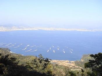 15:25 包が浦の牡蠣筏。奥に広島市街。 |