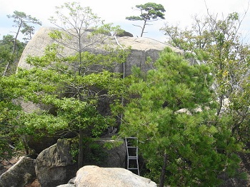 | 10:41 山頂の大石。三石山(みついわ)の由来。 | 10:41 中央に絵下山。 | |