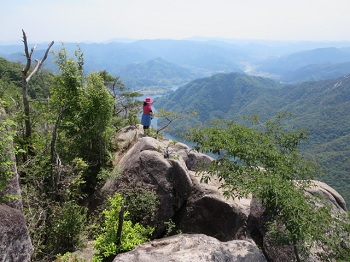 | 大竹市の弥栄湖の東に位置する黒滝山へ。向かいの白滝山からいつも眺めていた山だ。弥栄1号トンネルから登って5号トンネルへ下る。1ごうトンネルを超えるといきなり急坂、登山道はイマイチ。獣道に近い。展望所は途中で断念。頂上は、眺望無し。北へ15分ほどの展望岩からの」眺めは、申し分ないが、下りの道は、お世辞にも登山道とは言えない。 | ||||