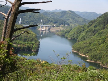 | 13:03 弥栄湖を見下ろす山××。 | 13:03 眼下に弥栄湖。 | |||