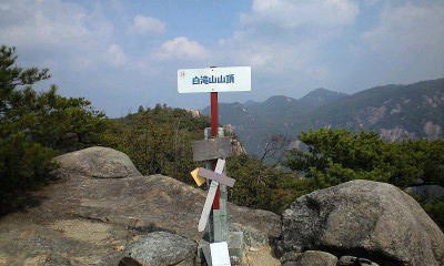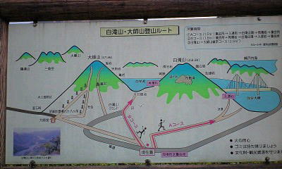 | 岩根集会場傍の案内板。集会場にはトイレも有る。 | 白滝山頂。遮るものは無く景観はとても良い。 | |
