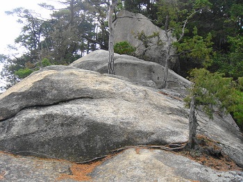 | 11:19 大きな岩が多いコースです。この上でしばし休憩。 |