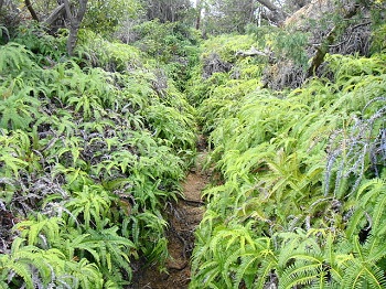 | 11:01 羊歯の登山道。風情があるかな。 |