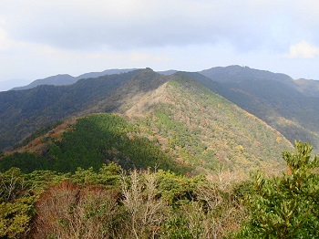 | 12:43 歩いてきた尾根を振り返る。遥かに嘉納山。 |