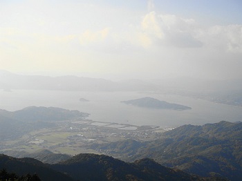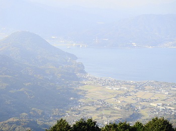 14:42 文珠山展望台から・・・大島大橋も霞んでます。 |