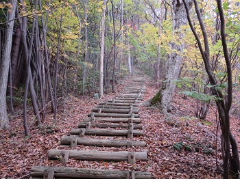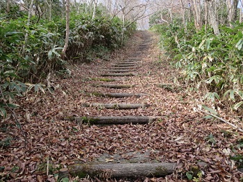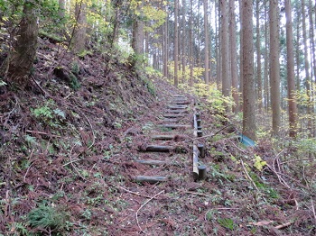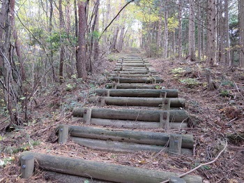 | 12:19尾根道にも木段。 |