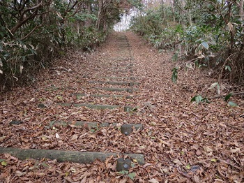 | 登山道の展望は無し。只管 木段を上るのみ。一人だと かなり自虐的だって。 |