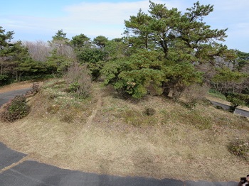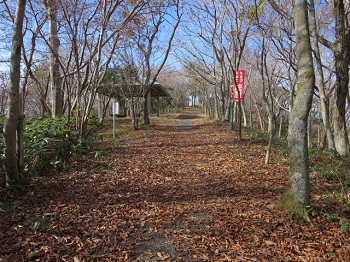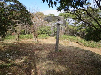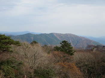 12:50 左が展望台、右の小山が山頂。 |