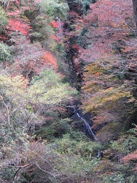 | 9:08 木谷峡です。立派なカメラを抱えてる人達がいるけど・・・紅葉は 時季を過ぎて今一だった。 |