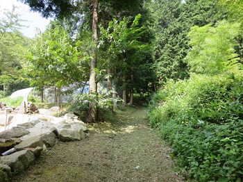登山道は、木陰だが、頂上は遮るものなし、スティックとシートで日陰を作って、ランチとなりました。