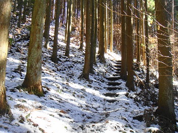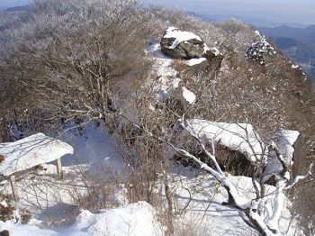 | 雲一つ無い快晴だ。急遽 思い立って大峰山へ出掛けてみた。9:50自宅を出発。途中 ランチに おにぎりとパン入りスープを購入。登山口に着いたのは11時近く。大峰山は雪化粧をしてるようだ。 |