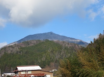 9:37 下川上の集落から見た大峯山。
