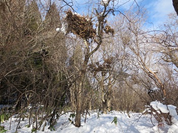 14:08 尾根道で熊棚を発見。