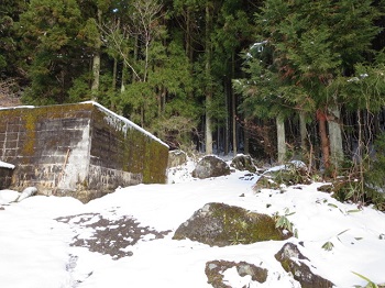 10:24 貯水槽横から杉林の中へ。