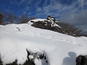 廿日市市玖島の登山口へ10:00着。頂上まで約2時間、積雪は30cm位かな。天候も良く 最高の眺望です。