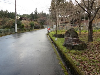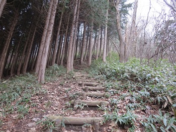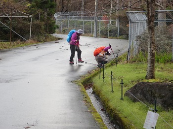 | 登山口に着くなり曇り始めました。頂上でランチの頃には、霰混じりの雨が降りしきって凍えます。 |