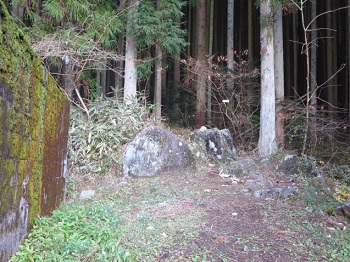 9:27 貯水槽横の登山口。ここから杉林の登山道へ。 |