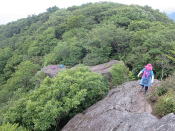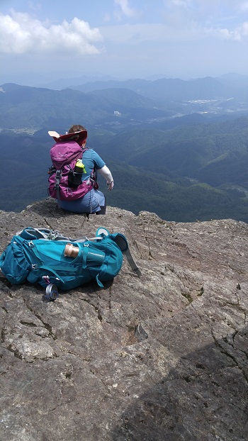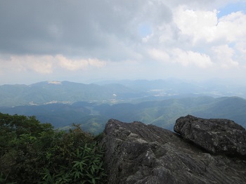 | 梅雨明けに大峰山へ出かけたは良いが、山中は湿度が高い!汗が乾かず滴り落ちる。それでも頂上は、絶景。更に奥のまわり縁は、風も心地よい。ここでのランチが最高かな。 |