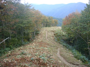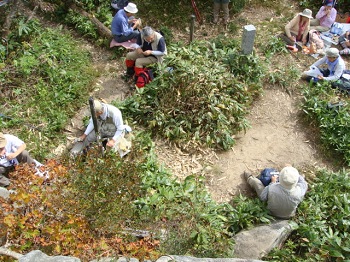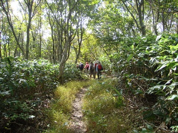 夏焼峠から山頂へ向かう道中。先行はバスの団体さん。一度追い越したんだけどね・・・。 |