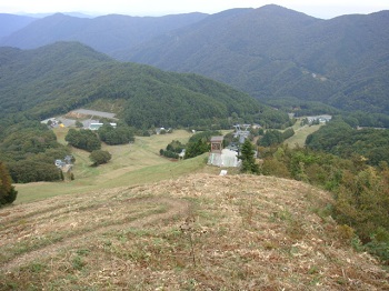 立山尾根から見た牛小屋高原と向こうに内黒山。 |