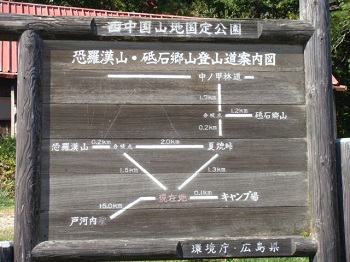 | 恐羅漢山頂上まで3.5km。ガイドブックによると、約1時間40分かな。 |