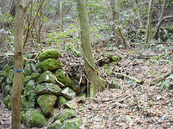 14:14 住居の石組跡。炭焼き窯かな。 |