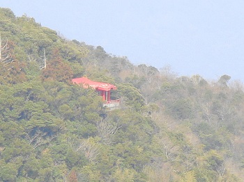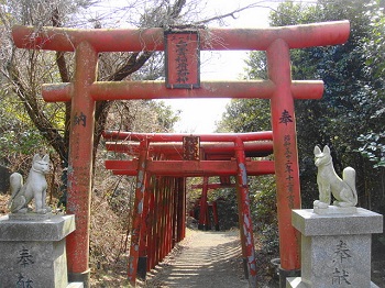 | 14:35 山肌に建つ白雲稲荷神社。 |