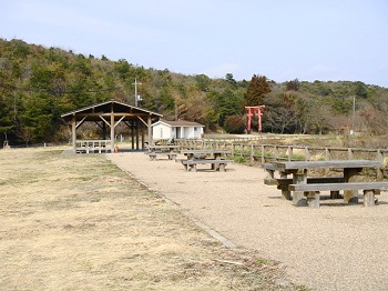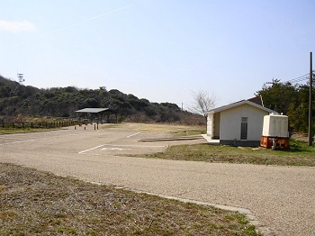 | 14:50 りっぱな駐車場。トイレは水洗です。奥に立派な東屋が2つ。土曜日なのに 誰もいない。 |