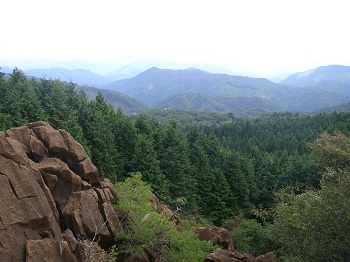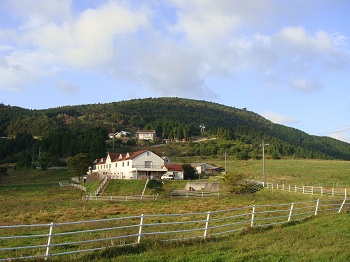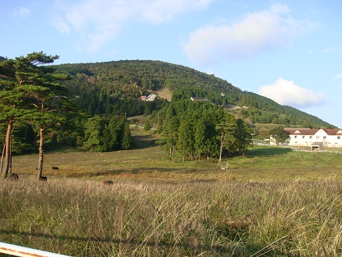 | 南麓から羅漢山を望む。東尾根に雨量計のドーム。 |