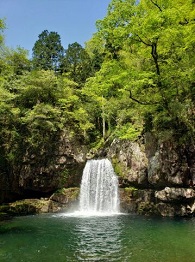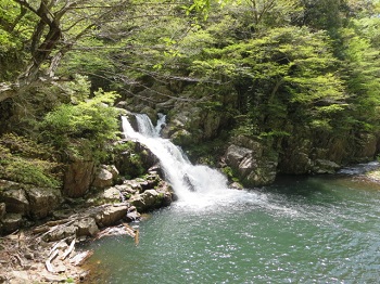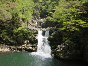 猿飛奥の滝。崩れる前は、二段滝。