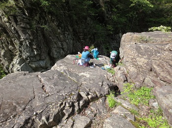 三段滝の上流でランチ。