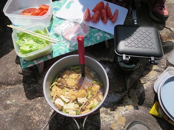 芋煮とホットサンド。