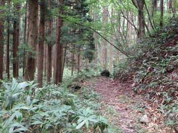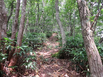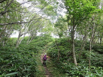 13:28 ブナ林を進みます。 |