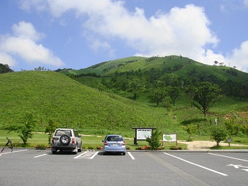 | 10:05 グリーンシャワー管理棟の駐車場より見る深入山。 |