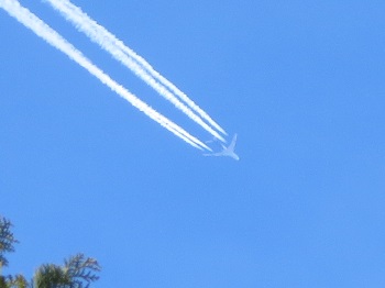 14:08 僅かの昼寝の間に、飛行機雲が幾筋も・・・。