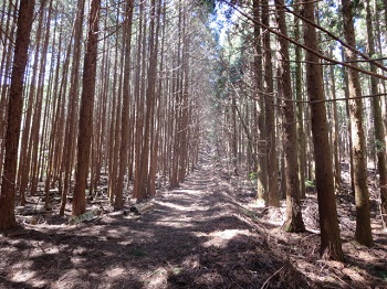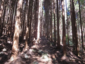 12:0 鷹ノ巣山の登山道は、桧の樹林帯。