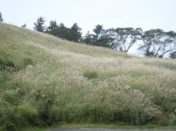 雲月峠寄りの登山口駐車場傍のススキ。 |