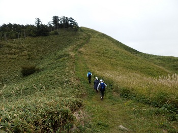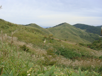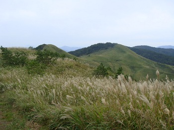 | 歩く距離としては、ちょっと物足りないかもしれませんが、どこか牧歌的風情の山です。時間がゆっくり過ぎていくのに合わせ、のんびりと花など愛でながら楽しめました。勿論この季節ですから、ススキを忘れてはいけませんネ。次回は5月、山焼きが終わって、山菜の頃に・・・。 |